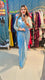 Go to the shopVibrant in a floral green printed suit with bold red accents.