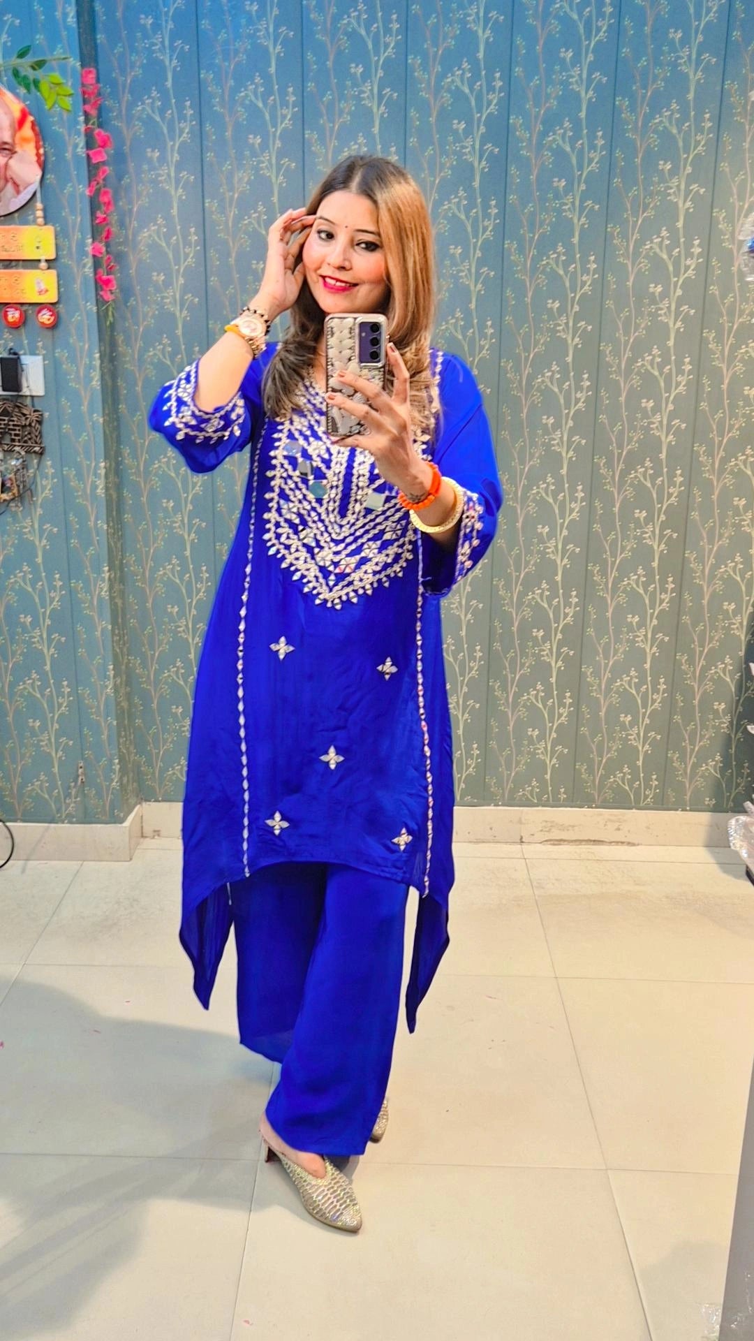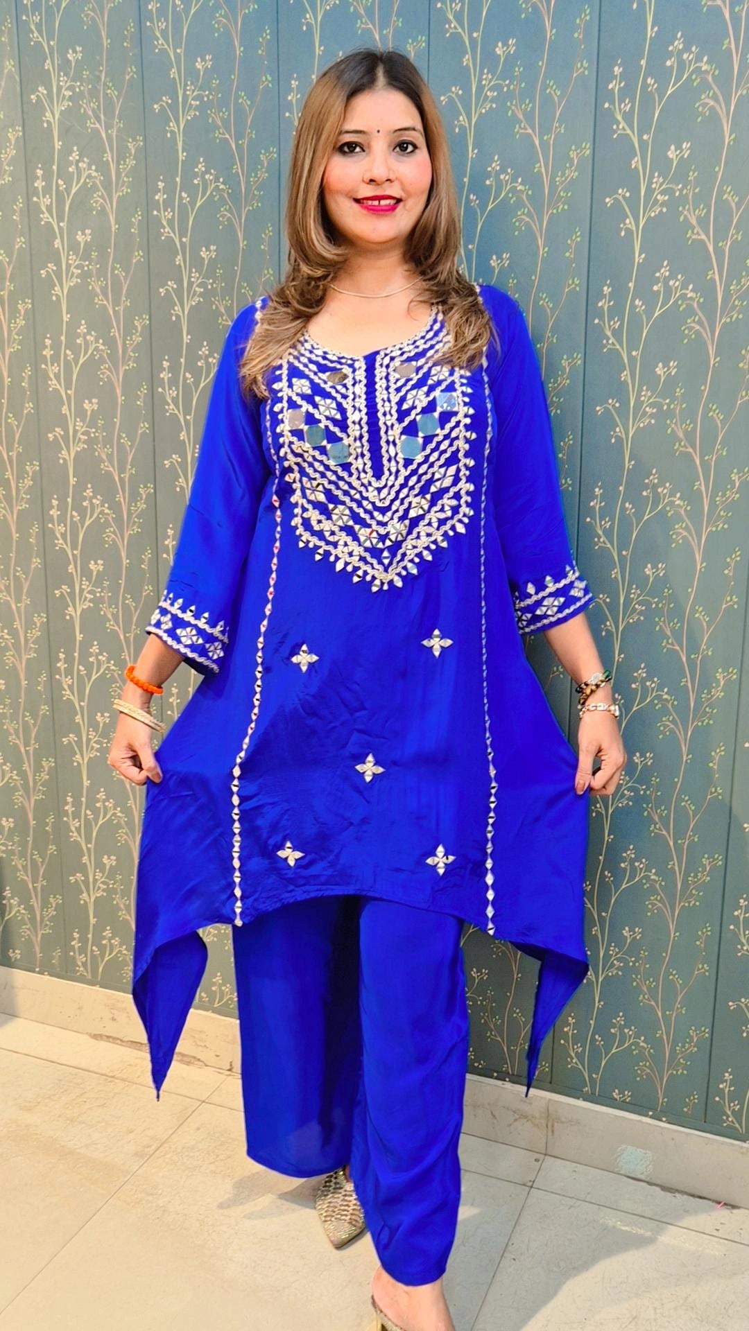 A stunning royal blue kurta set highlighted with intricate mirror embroidery — perfect for festive elegance and effortless style.